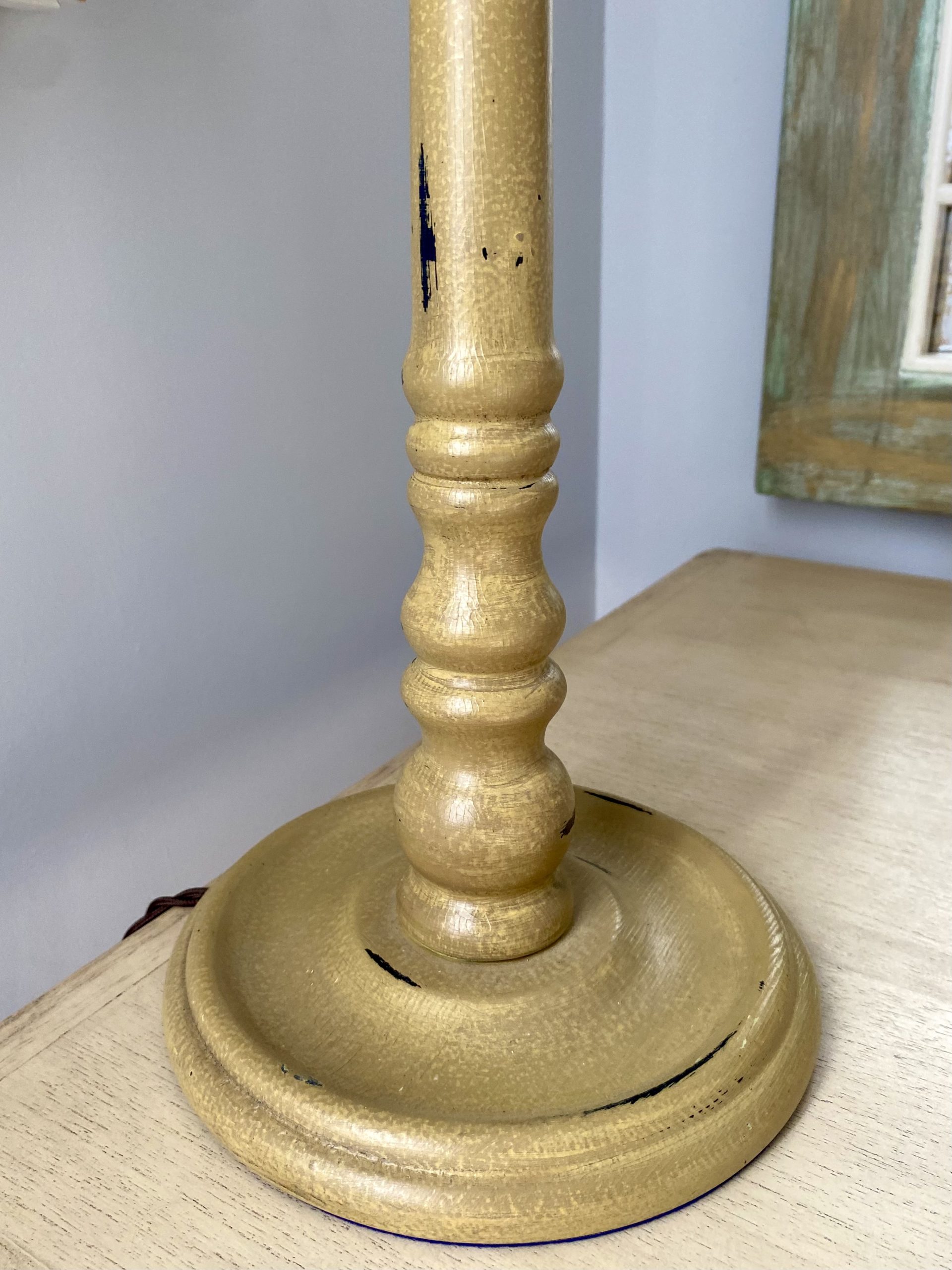Esta base de madera decapada con un elegante efecto envejecido, que realza la textura natural del material, aporta carácter y autenticidad. Es una pieza única y versátil que encaja fácilmente en distintos estilos decorativos, añadiendo calidez y personalidad al espacio. Esta lámpara es una pequeña joya a la que hemos mimado para darle una nueva vida.