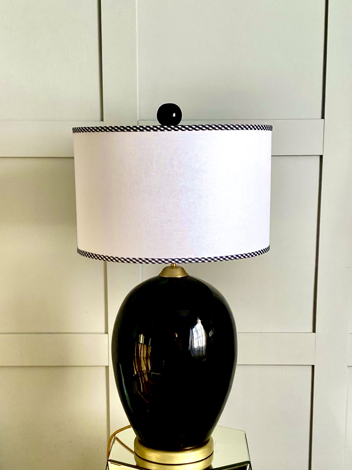 La pantalla Blanca con Filo Vichy aporta una elegancia fresca y toque chic que la hace destacar al instante. Sencilla, moderna y con mucho estilo, es la elección perfecta para transformar cualquier lámpara con un detalle actual y atractivo. Su interior dorado aporta una calidez envolvente que realza la iluminación, creando una atmósfera especialmente agradable. Puedes personalizarla eligiendo el color de filo que mejor se adapte a tu estilo.
