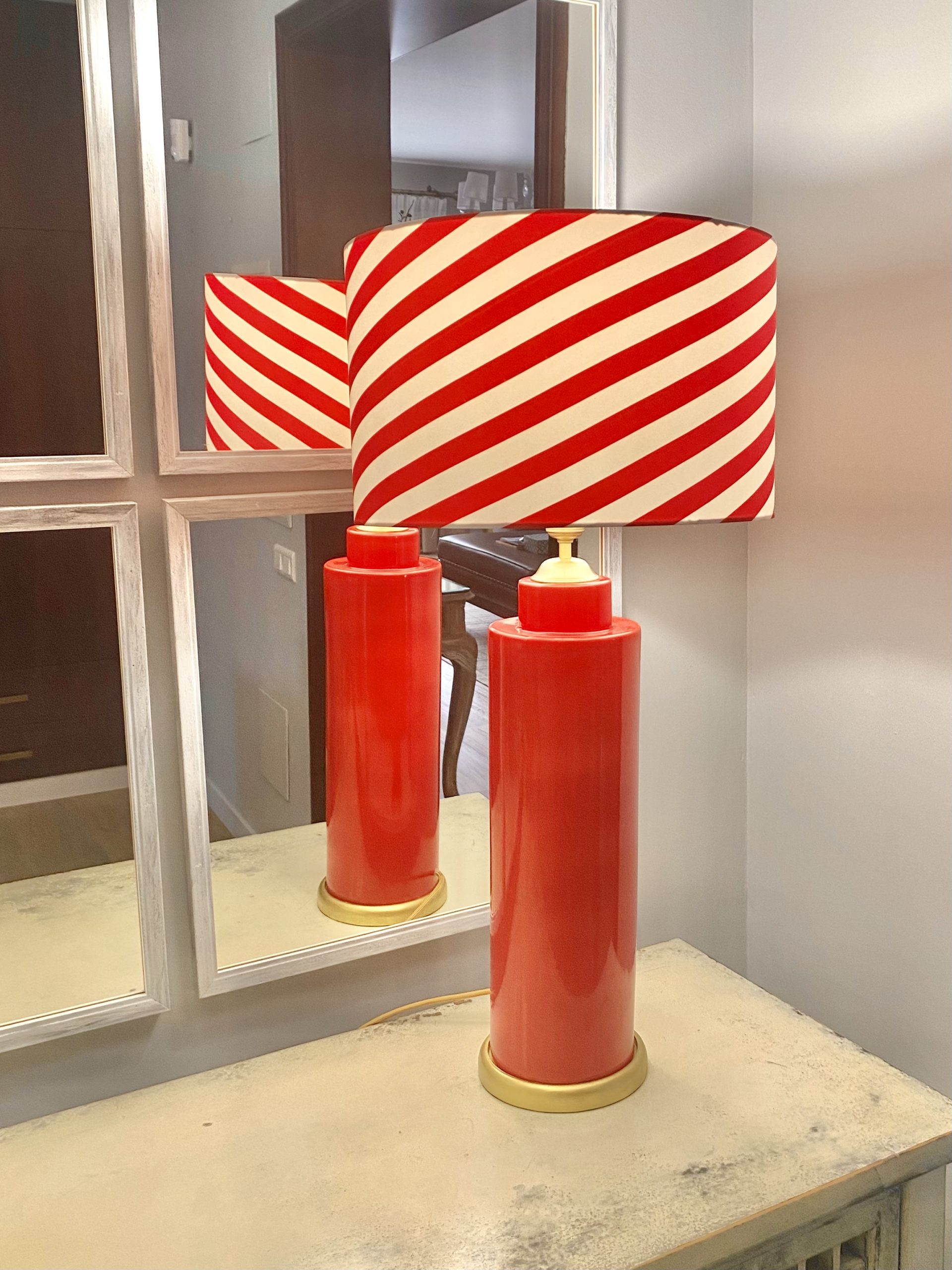 La lámpara Leonor roja con su base cerámica, de diseño elegante y contemporáneo, y su peana de madera pintada a mano aportan carácter y sofisticación a cualquier espacio. Combínala eligiendo entre las pantallas que te mostramos más abajo o explora nuestra sección de pantallas para encontrar la que mejor se adapte a tu estilo, creando una pieza única que atraerá todas las miradas. Si lo deseas, puedes añadir un pináculo decorativo para realzar su diseño. Es una lámpara perfecta para crear ambientes cálidos y llenos de magnetismo, que no solo ilumina, sino que también se convierte en un punto focal de tu decoración.