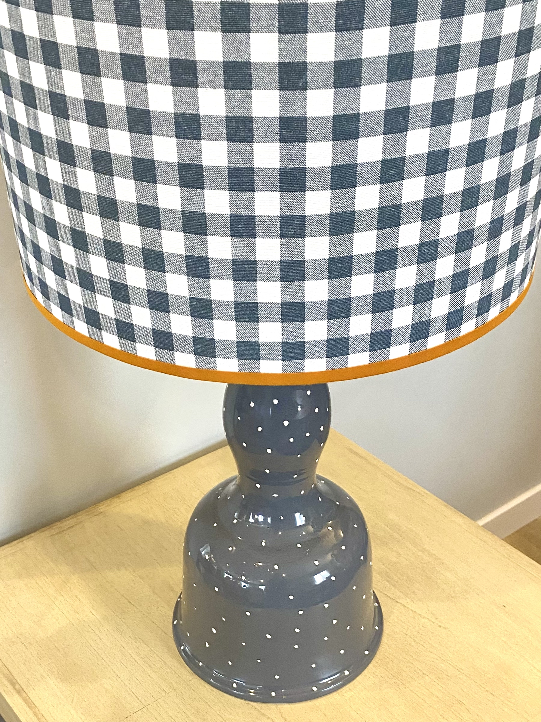 La lámpara Pilar Gris Topitos se caracteriza por su base de cerámica curva y original, de líneas suaves y delicadas. Combínala eligiendo entre las pantallas que te mostramos más abajo o explora nuestra sección de pantallas para encontrar la que mejor refleje tu estilo. Además, puedes añadir un pináculo decorativo para realzar su presencia y aportar un toque distintivo. Su color gris le confiere versatilidad, y los topitos blancos le añaden un toque de frescura, transformándola en una pieza decorativa con ligereza visual y mucha personalidad.