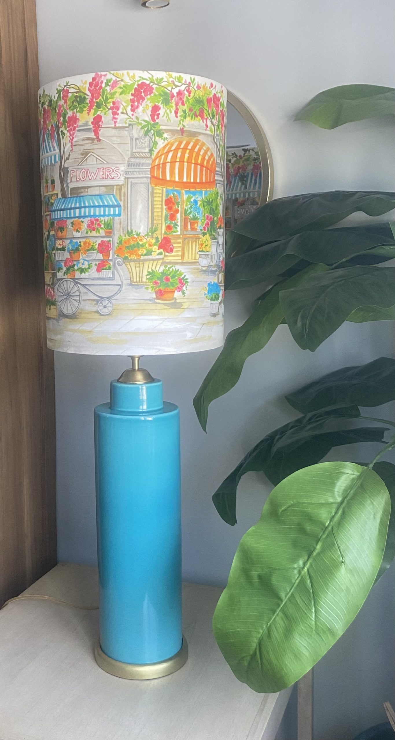 La pantalla Tienda de Flores destaca por su carácter fresco y luminoso. Llena de colores vivos y delicados matices, aporta vitalidad y optimismo al espacio, creando un ambiente acogedor y lleno de encanto. Una pieza decorativa que hace del espacio un entorno más vivo y especial.